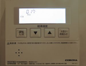 灯油を使用しているのは給湯器のみのため、灯油使用量はコロナ製石油給湯器の計量機能を利用します。どんな計量器が内蔵されているかは不明ですし、説明書にも「リモコンに表示する使用量は目安であり、実際の使用量とは異なります。」と但し書きがあるので精度は期待できませんが、灯油タンクについている計量計はそれをはるかに凌駕する低精度な目盛りなので選択肢はありません。給湯器の使用量が累積100ℓになったときに灯油タンクの計量計を見るとだいたいそれぐらい減っていたので目安としては問題ないようです。