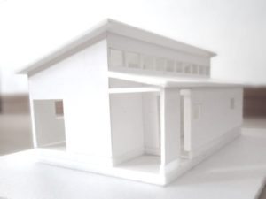 でも建築士とはいえ大工経験などない自分にセルフビルドなんてできるのだろうか、という不安は拭えなかったので、基本設計を終えた平屋の図面と模型を持って小樽市内の木材屋さんに相談しに行きました。すると、「面白いですね。きっとできますよ。協力しますよ。」と、背中を押すようなことを言って頂きました。すっかりその気になってセルフビルドでいくことを決めました。それなら間違いなく予算内に収まります。