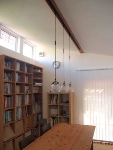 陽の光を積極的に取り込むために南東向きの高窓を設けています。窓は高い位置にあるほど部屋全体を明るくする効果が高く、道南江差の古い民家などにも見られます。雨の日でも日の出から日没まで照明は必要ありません。